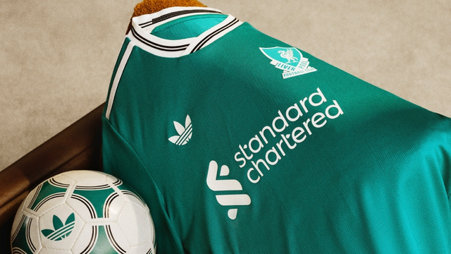 球衣以亮眼的海青色为主色调,灵感源自20世纪90年代至21世纪初阿迪达斯与利物浦的经典联名设计。为完整呈现复古美学,球衣还融入了1987-1992年间利物浦俱乐部的经典队徽,在唤起球迷怀旧情感的同时,亦注入鲜明的现代感。