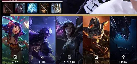 IG选用:Soboro塞恩;Wei赵信;Rookie辛德拉;Photic芸阿娜;Jwei露露