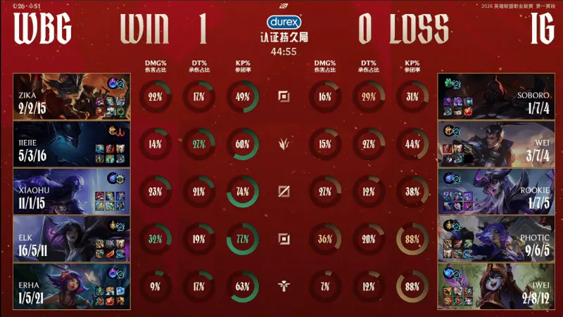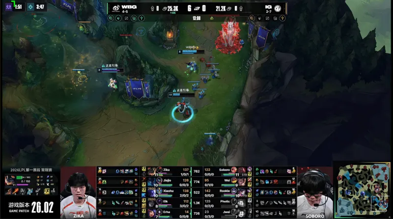 虎扑02月06日讯 GAME1:WBG蓝色方;IG红色方